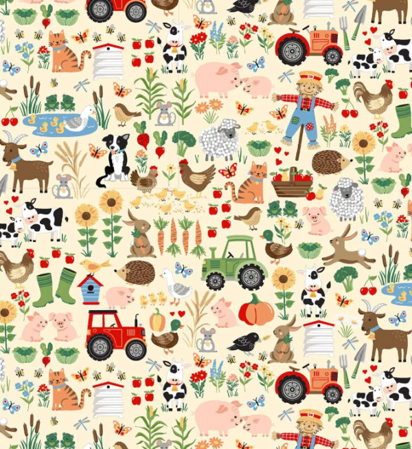 Makower ‘Farm Fun Collection’ 100% Cotton Fat Quarter, Half or Whole Metre