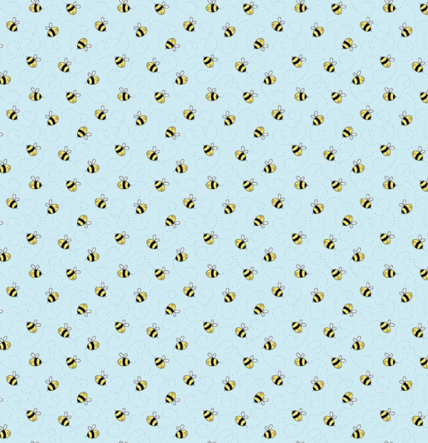 From Makower, Sunny Honey Collection : the fabric has smiling bees on a blue back ground